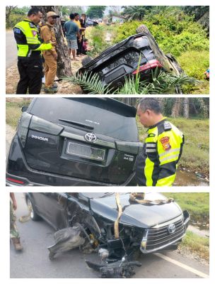 Innova Seruduk Mobil Dinas Wakil Ketua DPRD Bengkalis hingga Terbalik