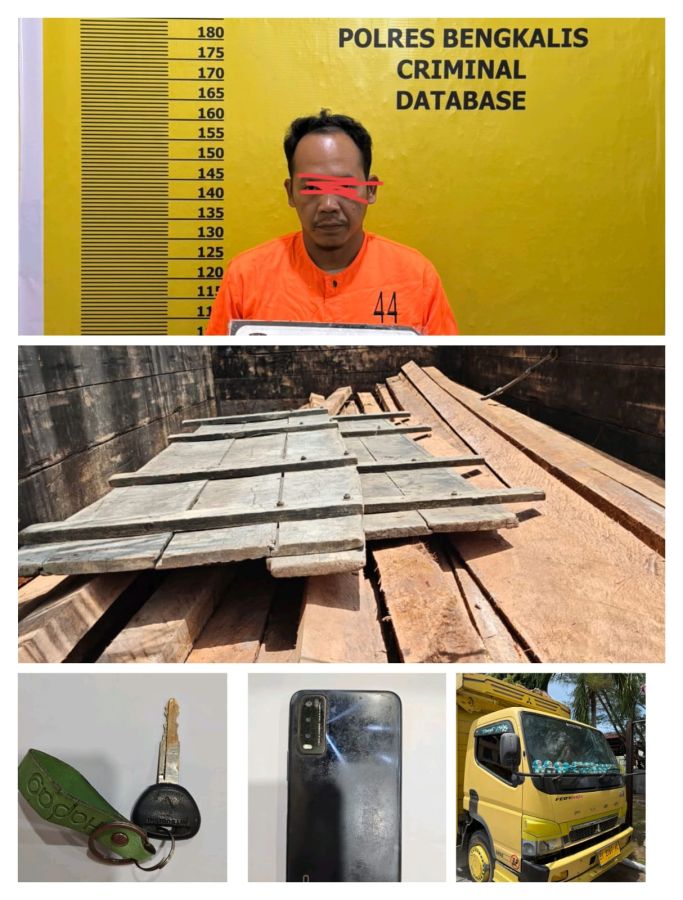 “Menindaklanjuti informasi tersebut, tim Satreskrim Polres Bengkalis langsung menuju lokasi untuk melakukan pengecekan. Setibanya di tempat kejadian perkara, petugas menemukan satu unit mobil yang membawa muatan kayu olahan berupa papan,” jelas Kasat Reskrim.