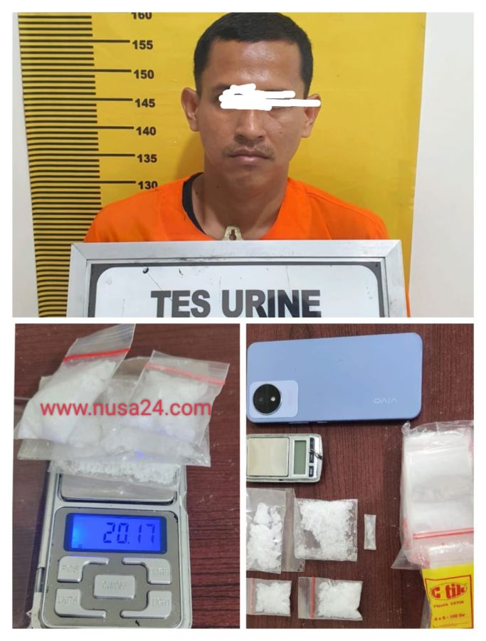 Dari penangkapan tersangka petugas berhasil mengamankan barang bukti diduga narkoba jenis sabu-sabu seberat 20.17 gram.