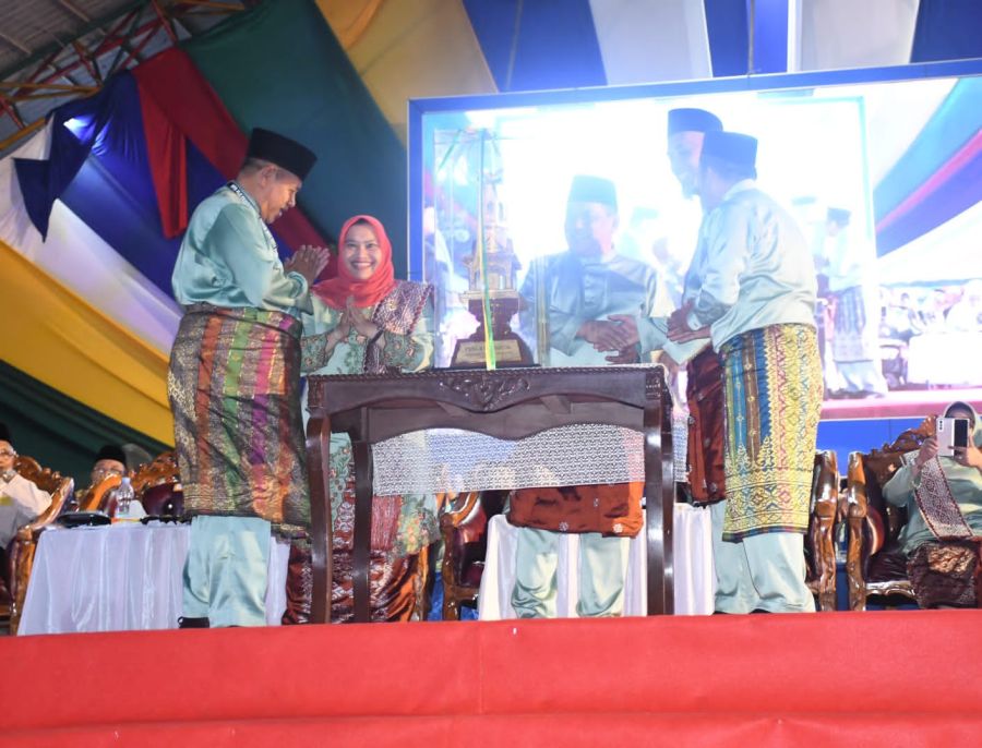 Selain menyerahkan piala juara umum MTQ tahun lalu kepada penyelenggara, Bupati Kasmarni juga ikut menabuh kompang tanda dimulainya MTQ tingkat Provinsi Riau ini.