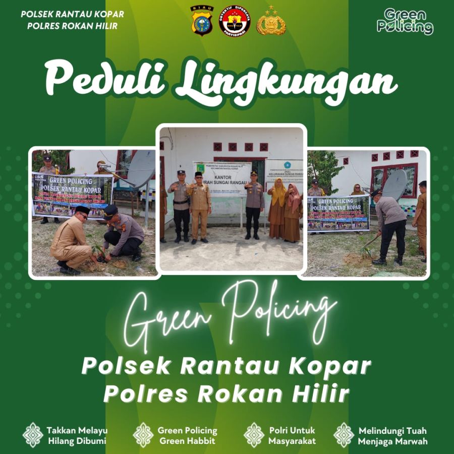 Rohil--Nusa24.com--Kapolsek Rantau Kopar IPTU NANANG PARINDURI, S.H., M.H beserta Anggota Polsek Rantau Kopar Polres Rokan Hilir melaksanakan kegiatan Green Policing dan penyuluhan Peduli Lingkungan & Hutan, di Kel. Sungai Rangau Kecamatan Rantau Kopar.