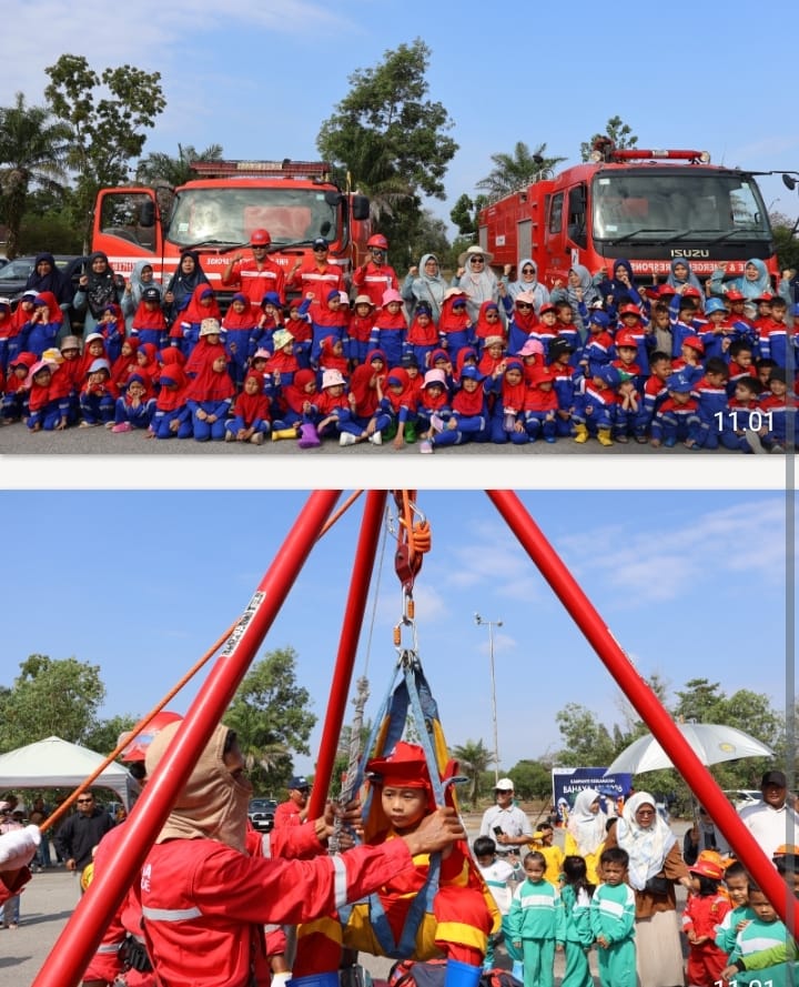 DURI, ---Nusa24.com--6 Februari 2025 – Matahari pagi belum terlalu tinggi, namun riuh tawa dan tepuk tangan sudah pecah memenuhi lapangan. Ratusan anak berseragam warna-warni tampak berjingkat kegirangan saat melihat pancaran air menyemprot ke udara. Bukan sedang bermain di taman hiburan, ribuan tunas bangsa ini sedang asyik berteman dan mendapatkan pembelajaran edukasi bahaya api oleh PT Pertamina Hulu Rokan (PHR).