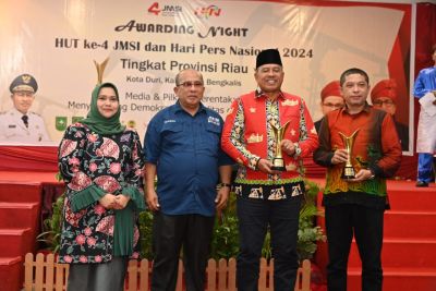 Bupati Bengkalis Kasmarni,Siak dan Pelalawan Raih Penghargaan JMSI Riau Award 2024