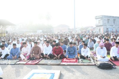 Bupati Kasmarni Sholat Idul Adha, Ribuan Warga Ikuti Sholat Id di Lapangan Terminal Duri Bestari